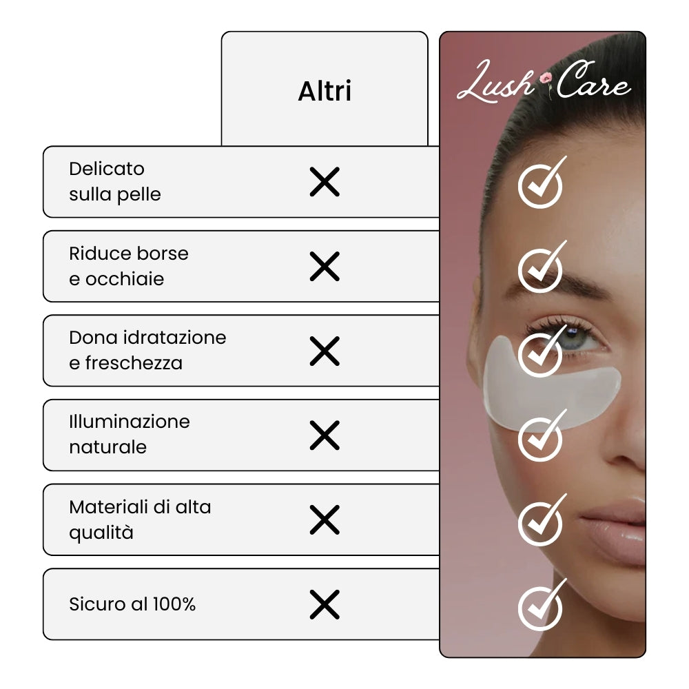 I patch occhi aiutano a idratare la pelle, ridurre borse e occhiaie, rendere lo sguardo più luminoso e levigare le piccole rughe, lasciando la zona occhi fresca e riposata.